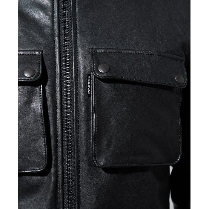 左右の胸ポケットが特徴的なカジュアルライダース。ハンティングジャケットとライダースを融合させたデザインです。