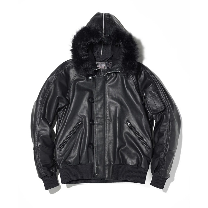 米軍の寒冷地用フライトジャケット「N-2B」をベースに、ライディング仕様として再構築。ゴートスキンを採用し、重衣料でありながら比較的軽く、しなやかな着心地に仕上げました。