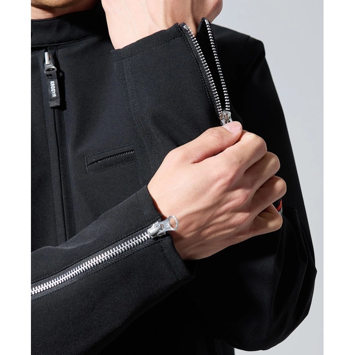 金属部材が光るオーソドックスなライダースとカバーオールを掛け合わせたデザインで、バイクシーンから普段使いまで幅広く活躍します。