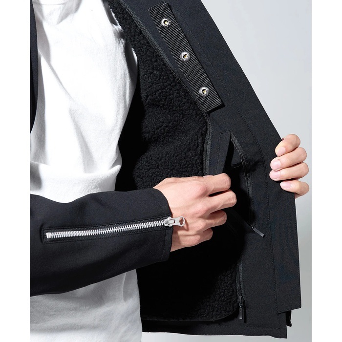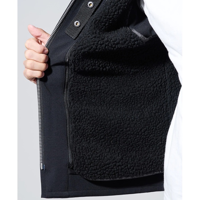内側の着脱式ライナーは、ボアと中綿を組み合わせた構造で、防寒性と動きやすさを両立しています。