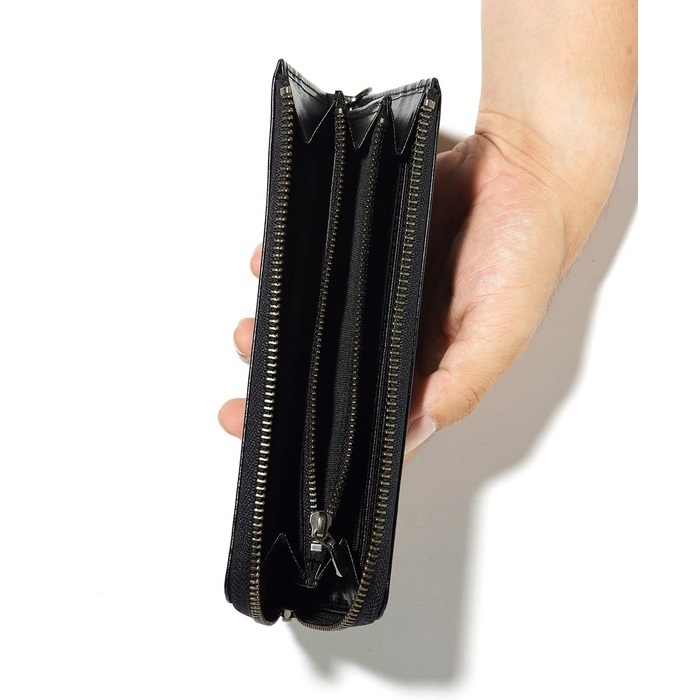 人気のL?ZIP?COMPACT?WALLETをリサイズし、紙幣を折らずに収納できる横長フォルムへアップデートしました。L字ファスナーを開くと、コインポケット・カードスロット・仕切りポケットが一望でき、会計動作をスムーズにサポートします。