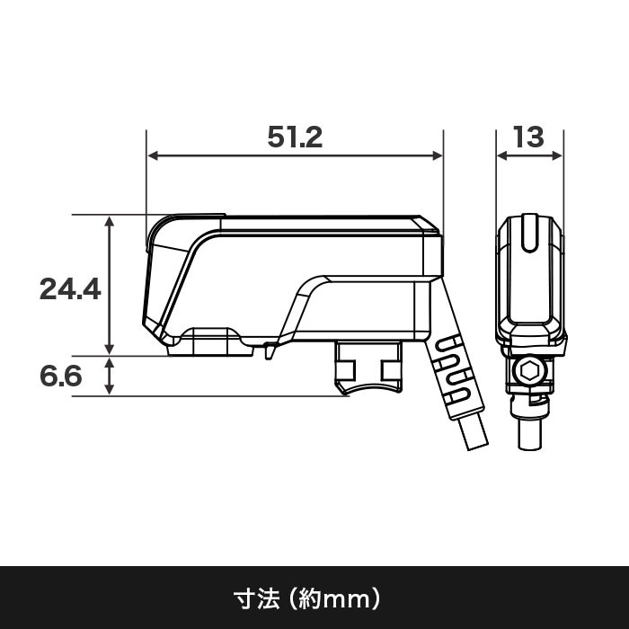 厚さ13mmでハンドル回りのちょっとしたスキマにも取り付けできる、場所を取らないスリムタイプ。
