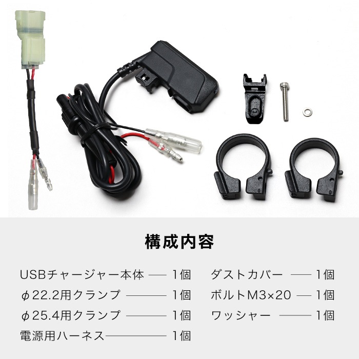 2種類のクランプを同梱。(Φ22.2/Φ25.4)