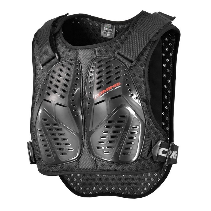 体の動きにしっかり追従するプラスチックシェルを採用したバックプロテクターに加え、重要な胸部の保護には男性サイズ(CE規格)と女性サイズで異なる形状のシェルを採用しています。