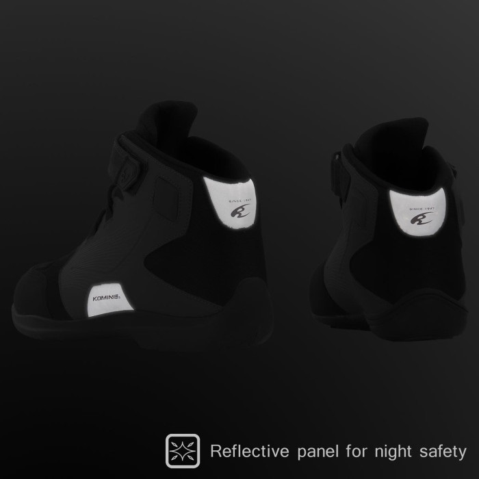防水仕様、シフトパッド、リフレクター、くるぶしガード、靴ひものひっかかりを防ぐベルクロフラップなど、ライディングのための機能をしっかりと網羅。