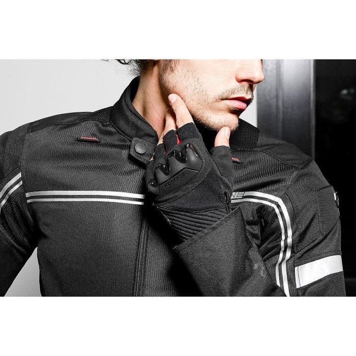 握りやすいラバーナックルプロテクターを装備した、夏の快適性と操作性を重視したフィンガーレスグローブ。