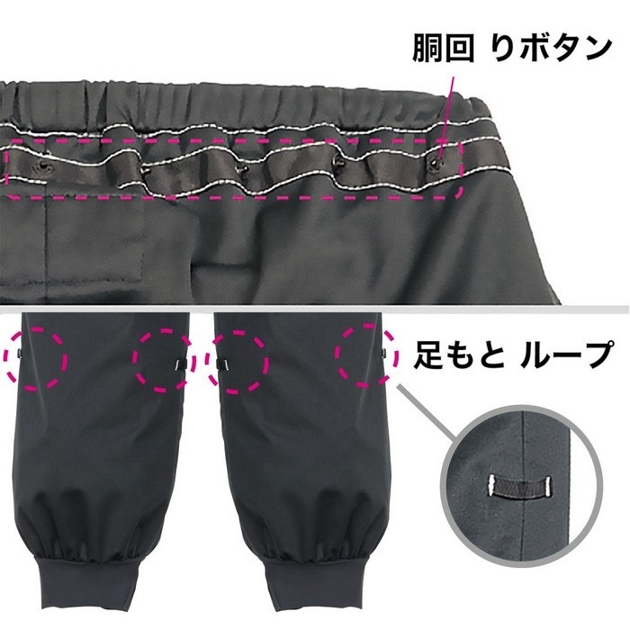 ウインドガード採用で、薄くしなやかに仕上げてあり、収納性、携帯性、運動性に優れます。スリム仕上げにすることで、タイトなアウターパンツの下に着用しても、動きを妨げることなく、高い防風効果で体温低下を防ぎます。着易さと携帯性を重視した、常備携帯しておくと安心な必携品としておすすめします。