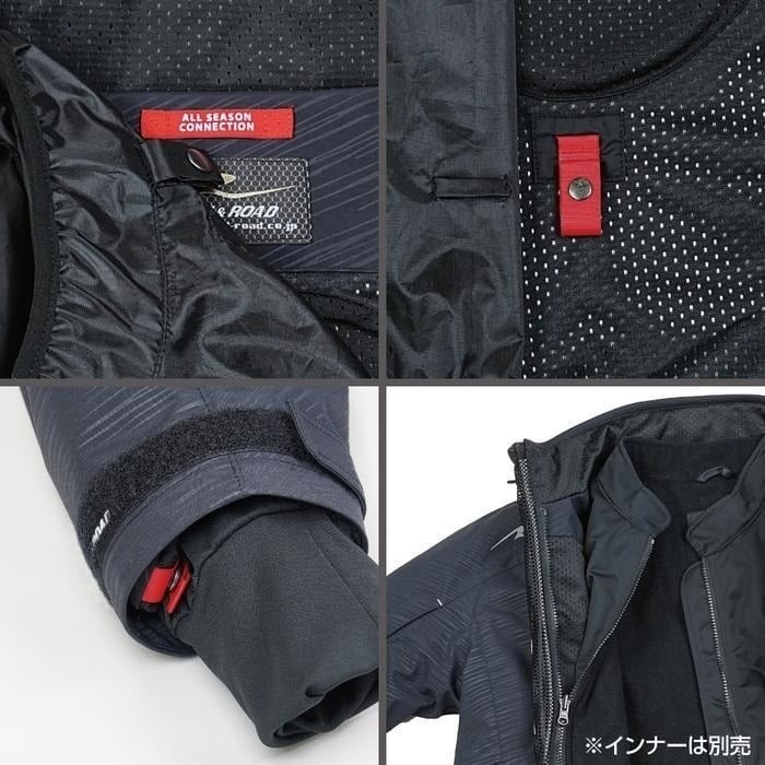 季節気温に合わせてインナージャケット(オプション)も装着でき、また酷暑の夏もフロントVベント、袖ベント、脇ベント、背中ベントと強力なベンチレーション装備でメッシュジャケット並みに涼しく快適なジャケットです。