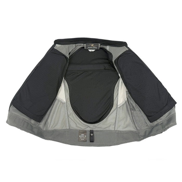 さらには胸・肩・肘・脊椎にエアスルーパッドを標準マウント、エアスルーパッドのフィット感を高めばたつきを抑えるアジャストフラップを腕部分に2箇所装備。