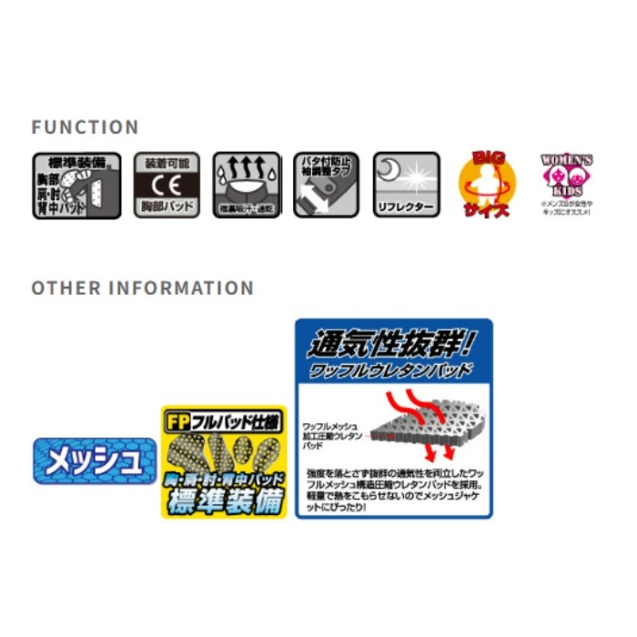 PROTECTOR: 胸・肩・肘・脊椎パッド標準装備