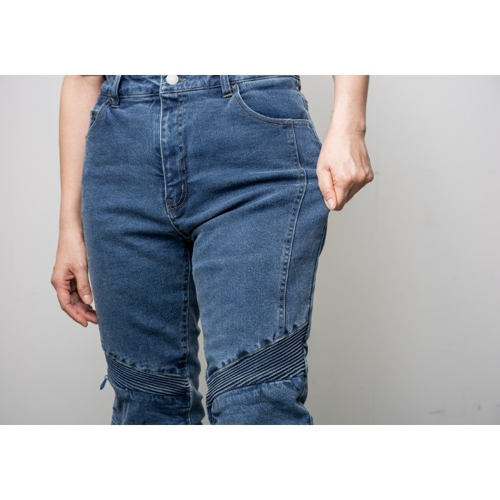 ライディング姿勢で一番テンションのかかる膝上にアコーディオンプリーツが入っているのでラクラク。