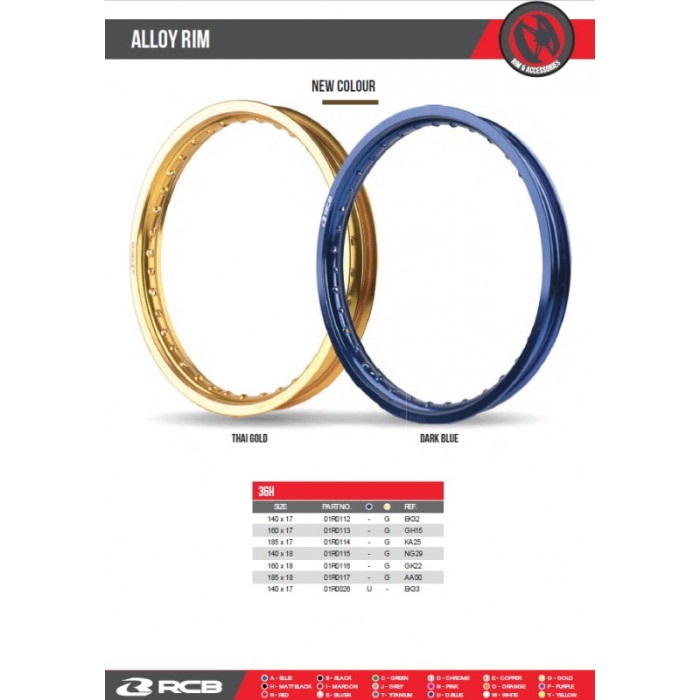 RCB アルミホイールリム【185-14】ゴールド【36H】
