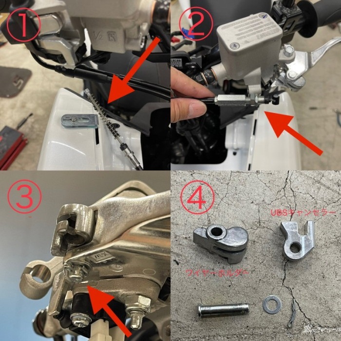 ■ブレーキレバー部リンクワイヤー及びホルダー部分の関連部品を取り外し本商品を取り付けることで前後ブレーキを独立してかけることが出来ます。