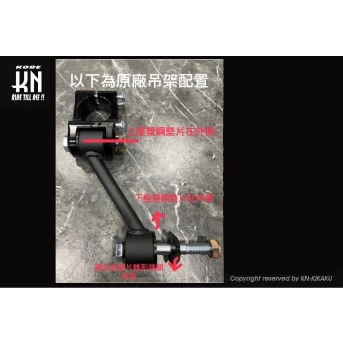■純正ハンガーのエンジン部上側のブッシュを取外し、代わりにフレームにブラケットを追加してサブハンガーを取付けます。
