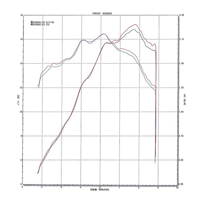 ・オールチタンマフラーの為、ノーマルサイレンサー5.2Kgに対し、2.6Kgと軽量。(ノーマル比約50%の軽量化)