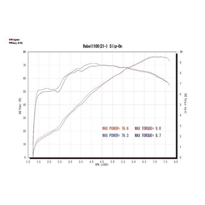 最高出力:76.6ps(STD:76.3ps)