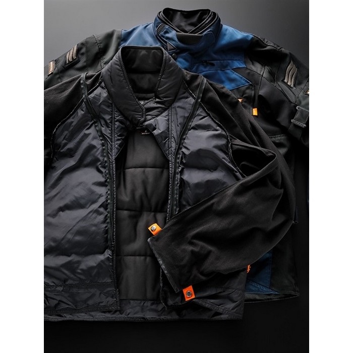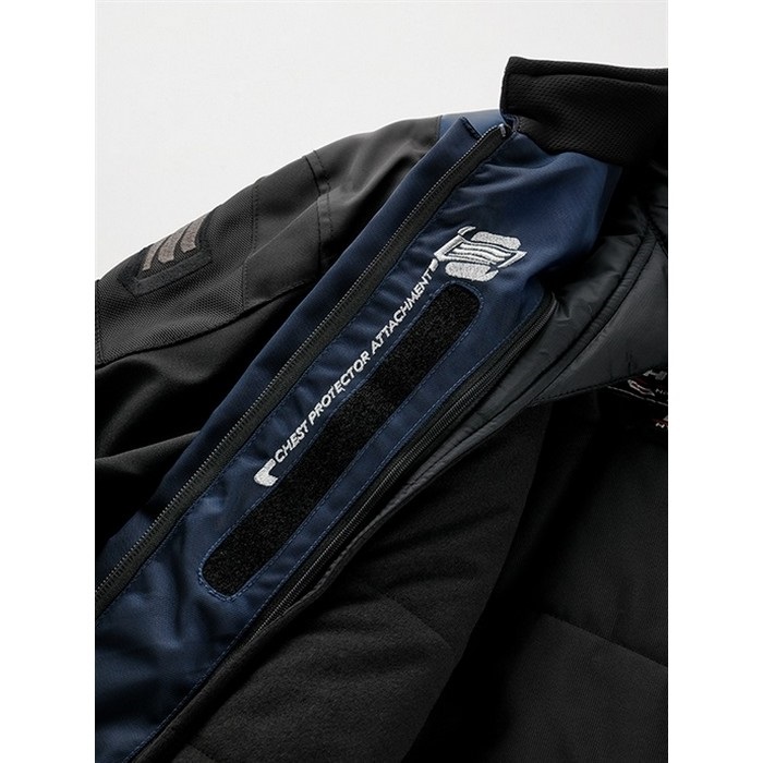 表素材に上質なNPツイル、内部に防水・透湿ベンチレートエアーライナーを採用した防水仕様のテキスタイルジャケットです。ロングツーリングなどの走行シーンで真価を発揮する走行時のフィット感と安心感に定評のあるロングセラーモデルです。