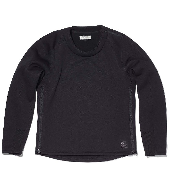 光沢を抑えた独特な風合いと黒で纏められた転写プリントロゴなどシックな印象に一新。新たに加えられたプルオーバータイプのラインナップはセーターのようにコーディネートと合わせやすく、着脱性を考慮した両脇と襟元のファスナーはデザインとしても目新しいアクセントになっている。