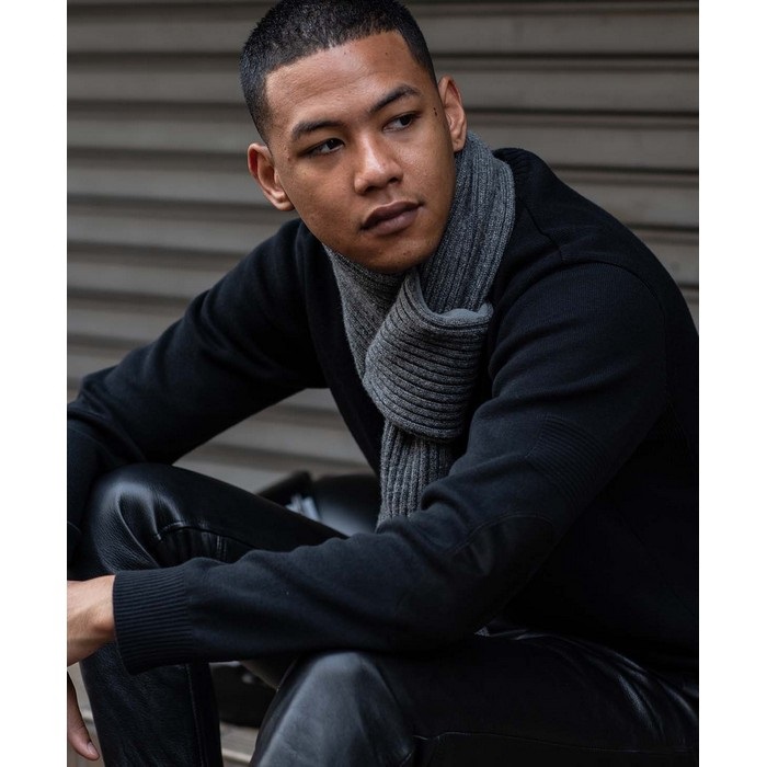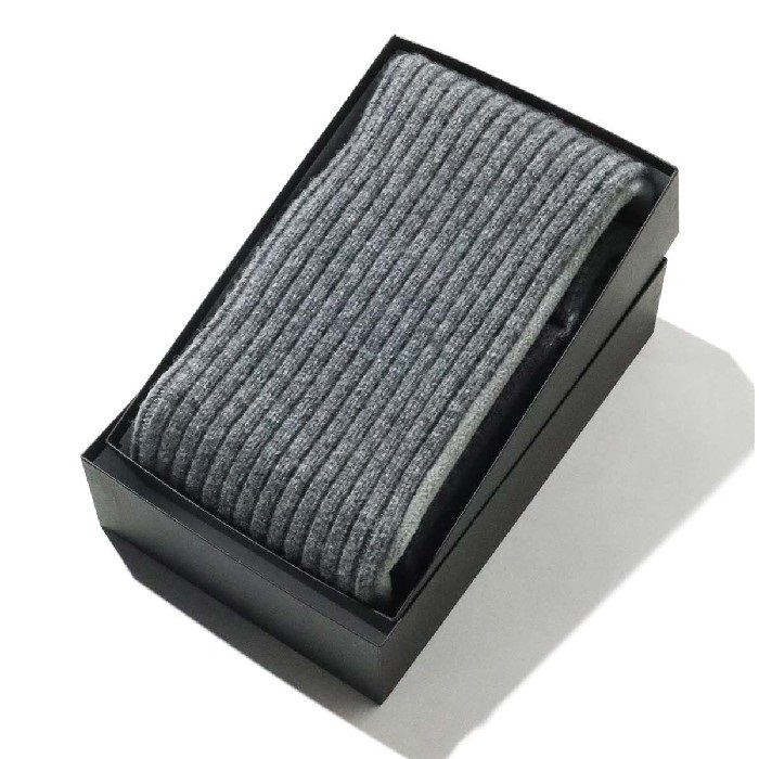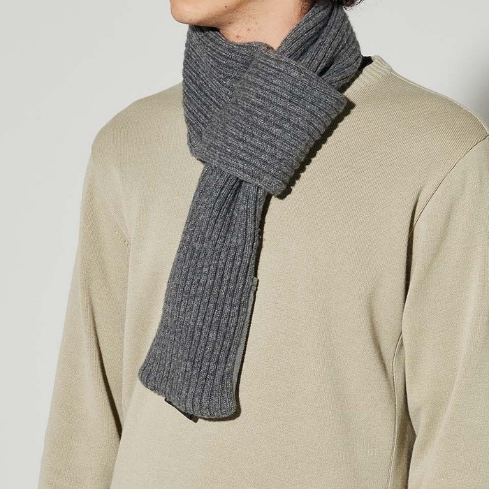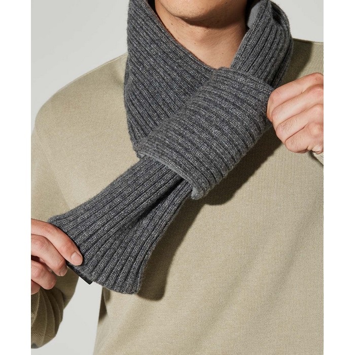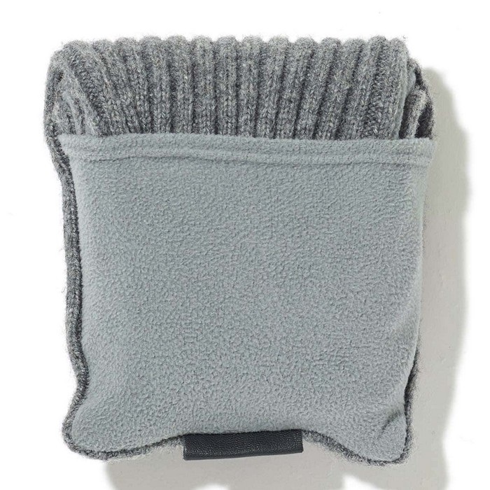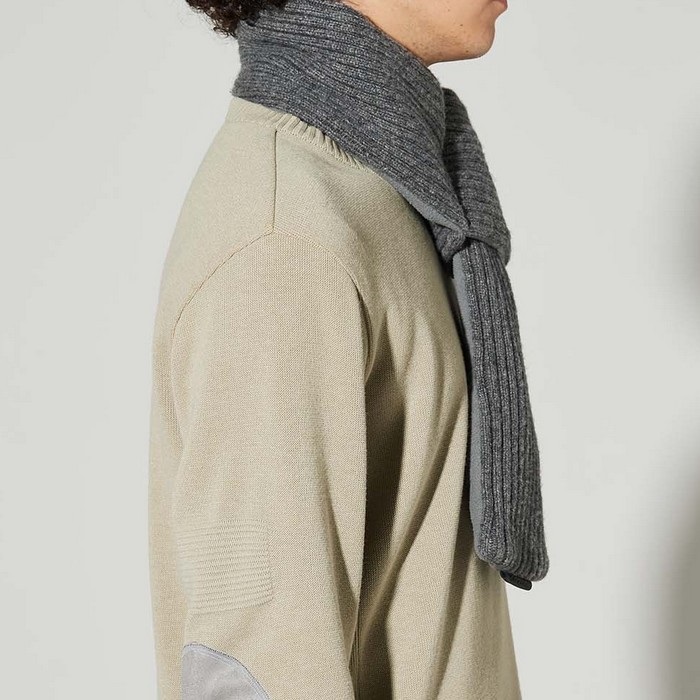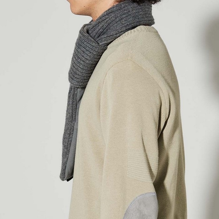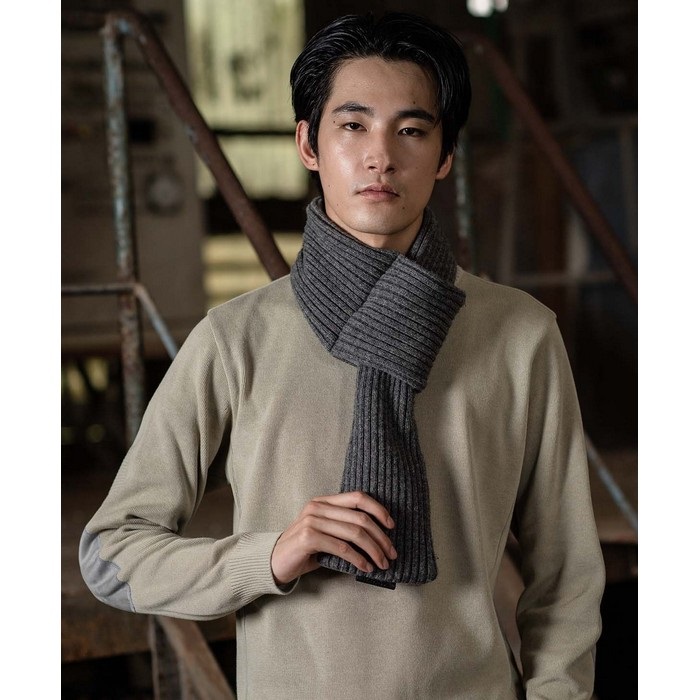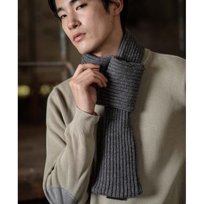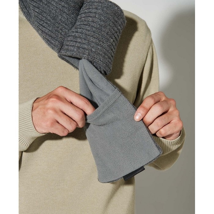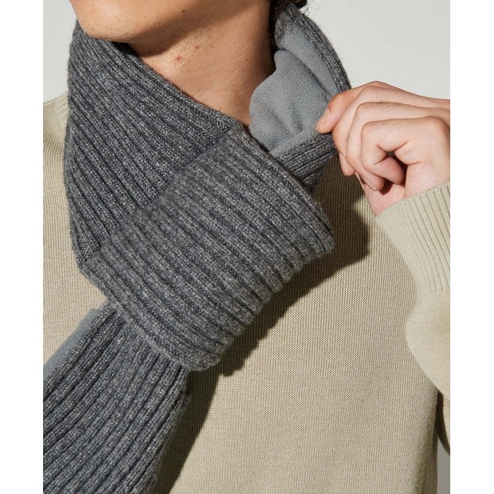 国産の毛糸で編み立てられたニットに、フィルムを内装し防風仕様にしたニットマフラー。