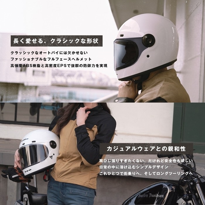 高品質ABSシェルを採用し、高強度を実現したレトロなデザインのフルフェイスヘルメット。