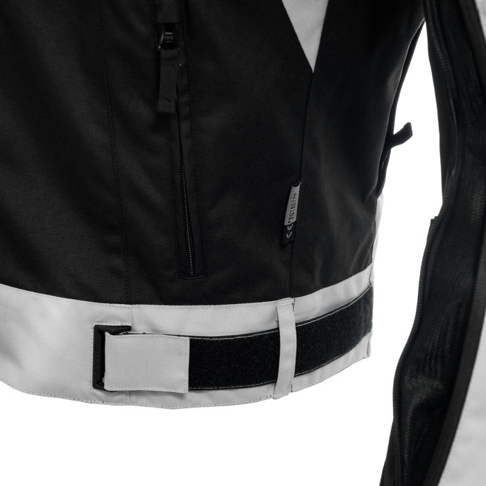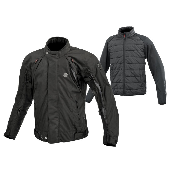大型ベンチレーション付きテキスタイルジャケット。肩・肘にはCE規格プロテクターを装備し、胸部プロテクターも標準装備。