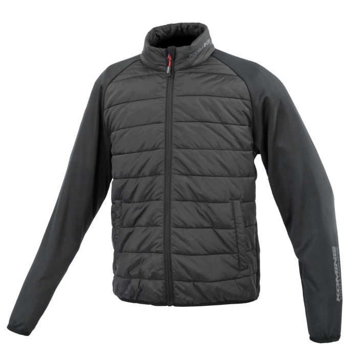 冷たい風を受け止める前面には保温性の高い中綿を使用し、袖や背面には動きの妨げにならない薄手で伸縮性の良いフリースを使用。ライディングジャケットの中間着として最適。