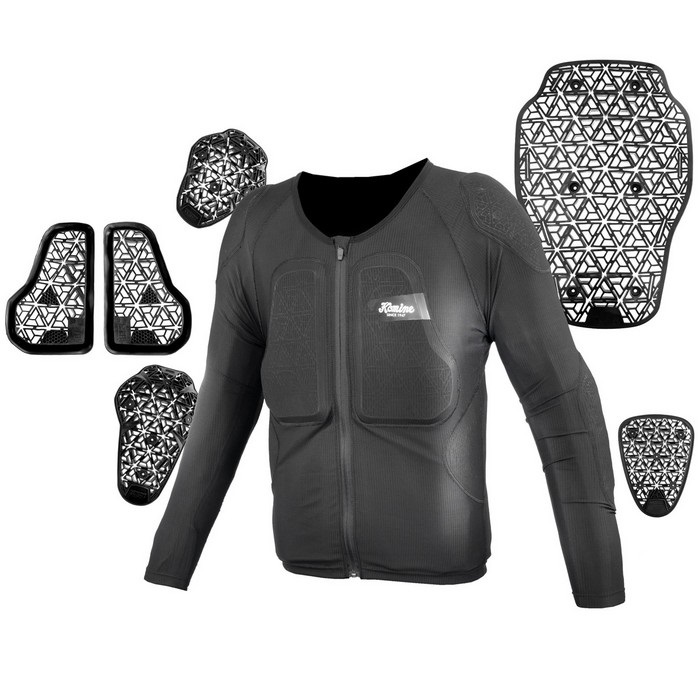 上半身をしっかりとカバーするフルプロテクション仕様でお手持ちのジャケットの下に着用し、保護機能をプラス。インナープロテクターは着脱可能。