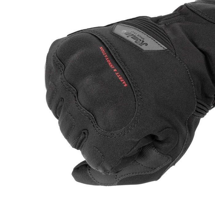 ナックルプロテクターとカーボンパームスライダーを装備。 立体パターン、高性能透湿防水フィルムHiPORAを採用し、電熱機能OFFでも ロングタイプのライディング用ウインターグローブとして使用可能。