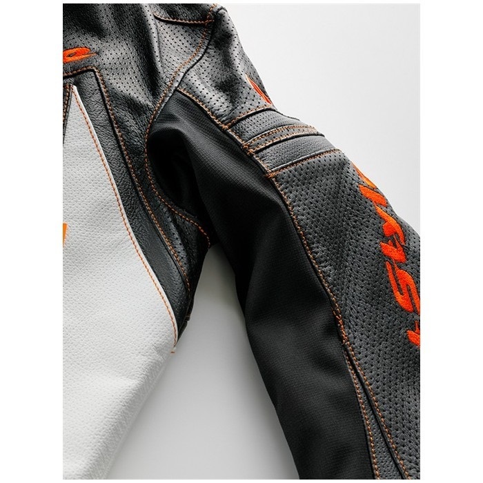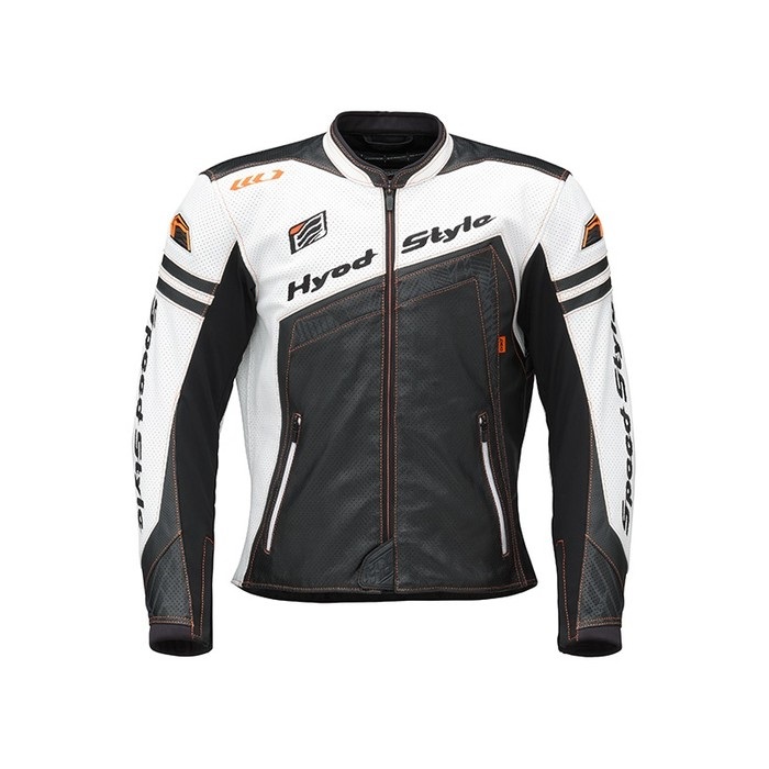 HSL019D NEO-iD D3O ST-X LEATHER JAC WHITE/BLACK ORANGE STITCH