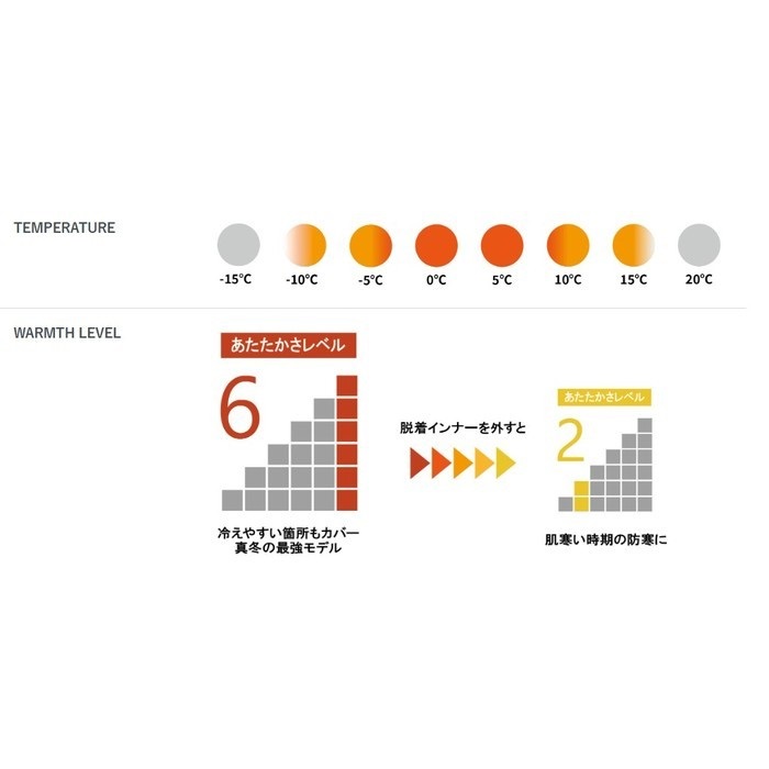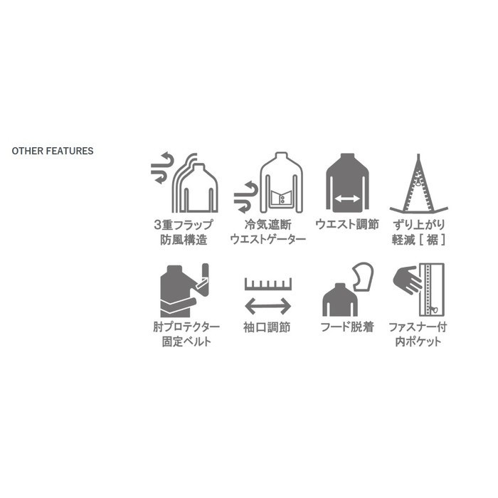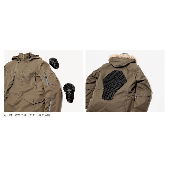 ミリタリージャケット「N-3B」をモチーフにしたロング丈のライディングジャケット。冷えやすい腰回りをしっかりカバーし、3重のフロントフラップ構造とウエストゲーターが走行時の冷気の侵入を防ぎます。中綿×なめらかな肌触りのボアが特徴の極暖インナーと合わせれば、真冬の寒さも気にならないあたたかさ。フロントには逆開ファスナーを採用し、裾のずり上がり軽減やボトムスへのアクセスにも配慮しました。フロント下部のボタンにはタンク傷つき防止カバー付き。インナー脱着でロングシーズン対応し、街使いにもなじむ一着です。 今季はカラー展開を一新して登場。機能性はそのままに、よりスタイリッシュな冬の装いを演出します。