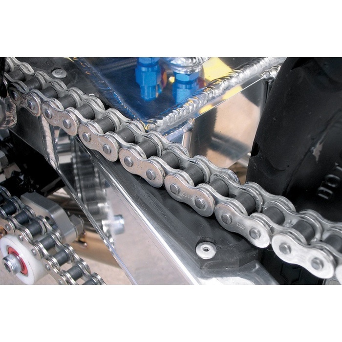 特殊素材のスライダープレートはスウィングアームとドライブチェーンが直接干渉するのを防ぎ、