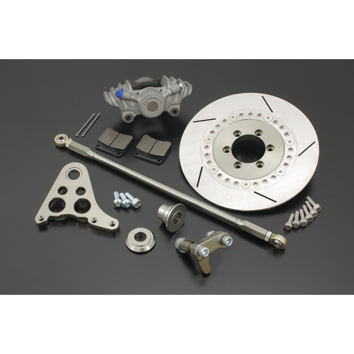 キャリパーをフローティングマウントさせるブレーキキット。