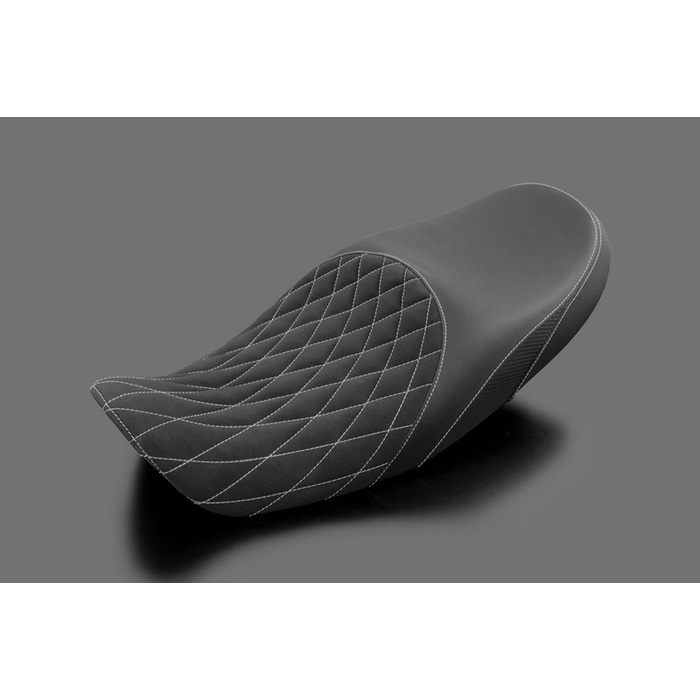 『ブラックカーボンレザー』のパッチワークを採用し、ライディングベース部分にはバイパーダイヤモンドステッチが施し、