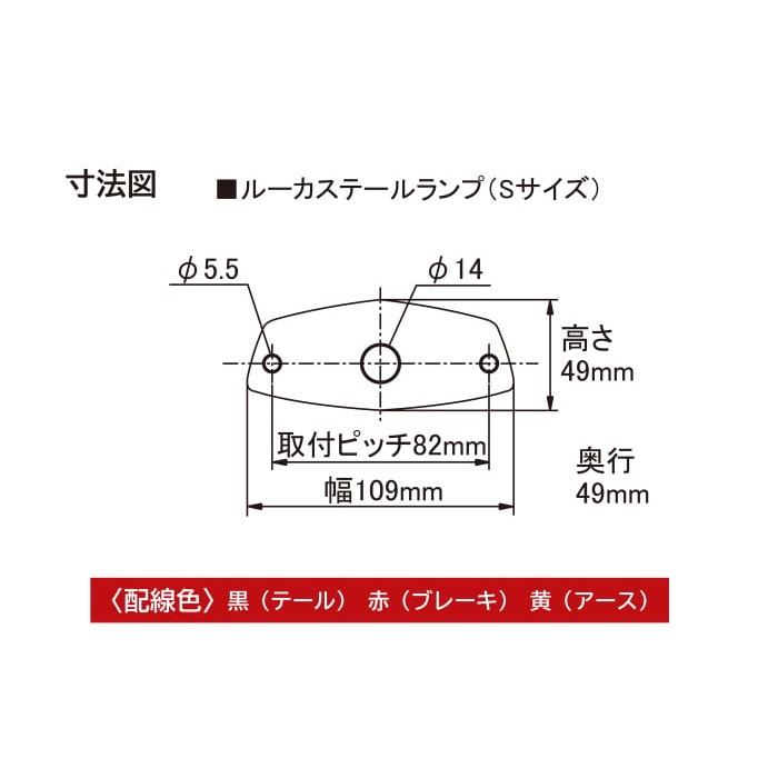 ・配線色:黒(テール)、赤(ブレーキ)、緑(アース)