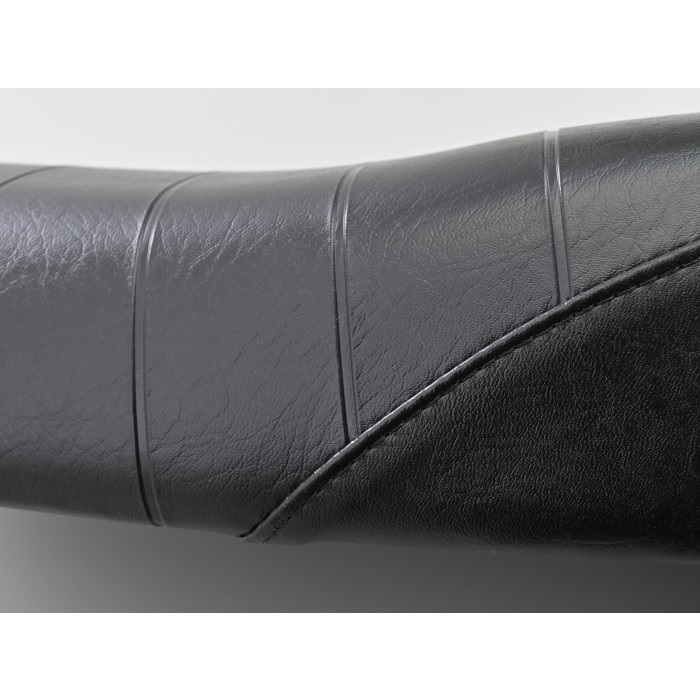 薄くても座ったときにしっかりとしたストローク感がある、一体成型スーパーウレタンを使用。このウレタンの硬さ、弾力性がライダーの体重をシート全体で受け止めることで、長時間座っていても疲れない乗り心地を確保 (デイトナ社カスタムシート対比) 。雰囲気のあるロールパターン仕様。