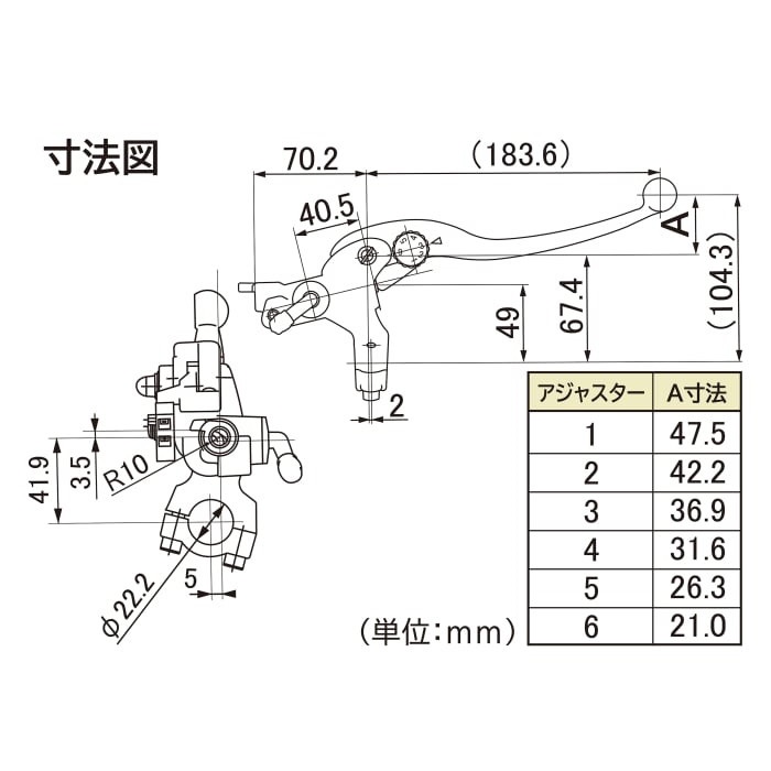 ※ご使用のキャリパーとの組み合わせによっては必要ブレーキ液圧が発生する前にレバーがグリップに当たり使用できないレバーアジャスター位置があります。レバーアジャスターの調整を行ない、ブレーキが十分に効き、なおかつレバーがグリップに接触しないレバーアジャスター位置でご使用ください。