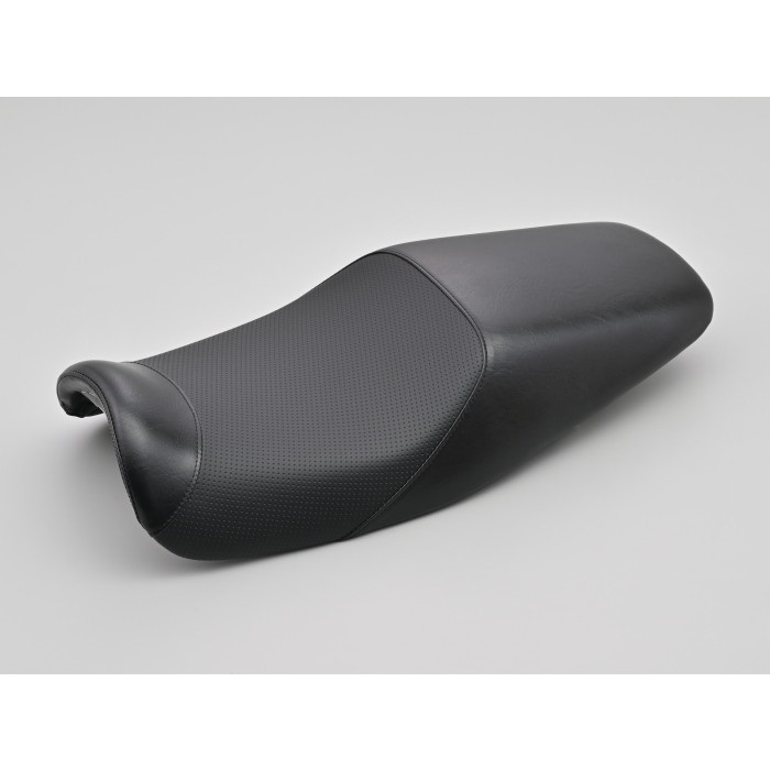 ベーシックなデザインながらも高めに設定したヒップストッパー部が加速時のポジション安定性を向上させ、座った時にシートが押し返してくるような上質のストローク感がロングツーリング時の疲れを低減。表皮ブラック。