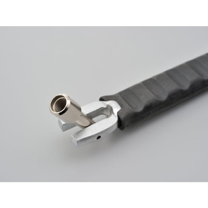アルミホイールなど傷がつきやすいホイールにも使用できるよう、支点となる部分に樹脂製のプロテクターが付いています。バルブ取付部分からの有効長300mm。ラバー部分92mm。