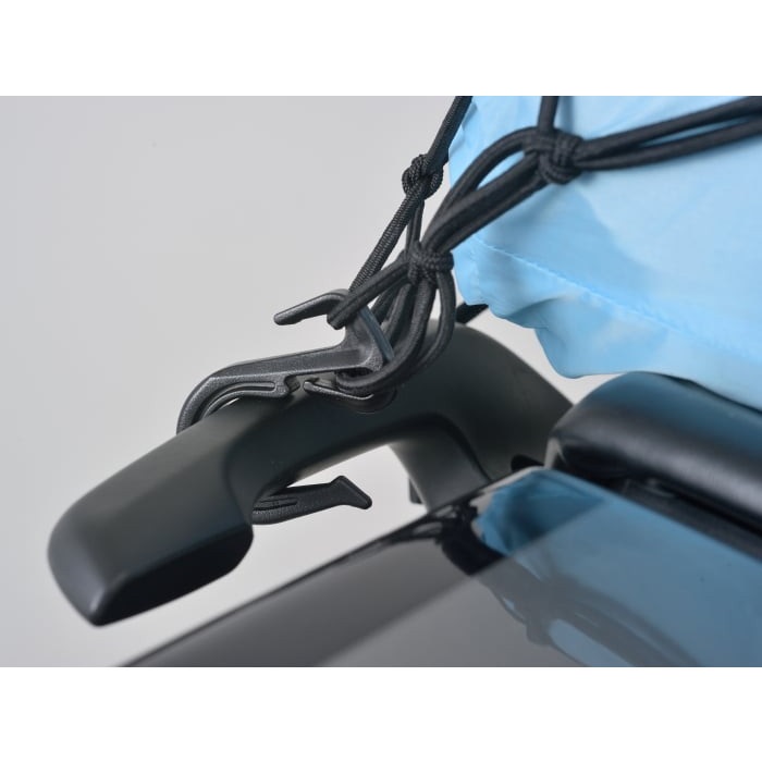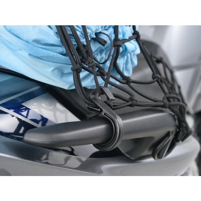 変形や摩耗が少ない強化プラスチックを使用し、H型断面構造で強度のあるコンパクトフック。コンパクトだから使い勝手も良く、ネットをたぐり、サイズ調整も可能な設計です。