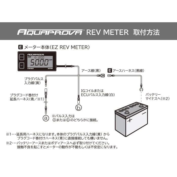 ※電装系強化パーツやH.I.D.と同時装着した場合、ノイズの影響を受けて動作が不安定になる場合があります。また、車両の状態によっては強いノイズが発生し、メーターに影響をおよぼす場合があります。