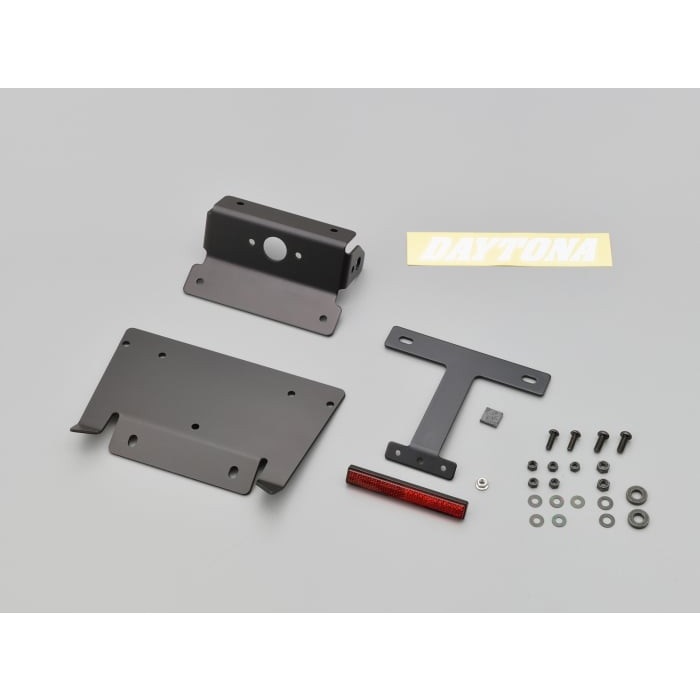 すっきりしたリア回りを演出するフェンダーレスキット。ナンバープレート取付角度は45°に設計。車種専用取付ステー、リフレクター&ステーなど必要部品が一式付属。別途ご購入いただく別売品がない、ボルトオンキットです。