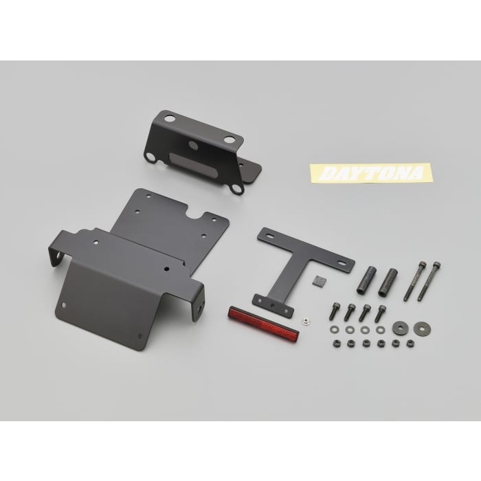 すっきりしたリア回りを演出するフェンダーレスキット。ナンバープレート取付角度は45°に設計。車種専用取付ステー、リフレクター&ステーなど必要部品が一式付属。別途ご購入いただく別売品がない、ボルトオンキットです。