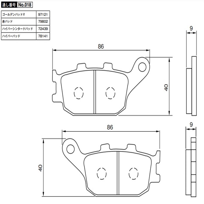 赤パッド No.018 CB1300SF / SB 03-21 / MT-09 14-22 / Z900RS 17-24等