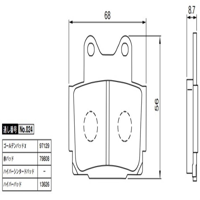 赤パッド No.024 SRX600-1 85-86 / FZ250フェザー 85-86 / RZ250R 84-88等