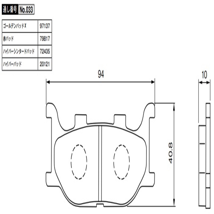 赤パッド No.033 DS1100 99-08 / DS250 00-17 / マジェスティ<4D91 / 4-6> 07-16等
