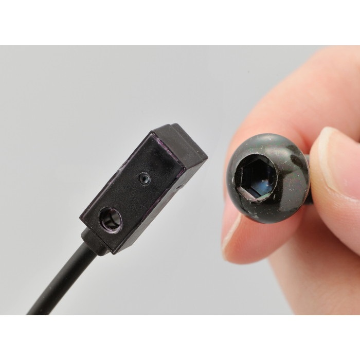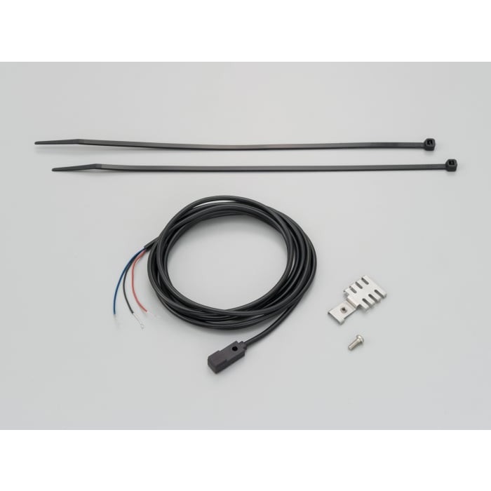 電気式スピードメーターを装着する際に必要となるマグネットを使用した非接触タイプのスピードセンサー。ディスクローターマウントボルトのボルトなどの先端に合わせてセンサーをセットすることでパルスを検出します。