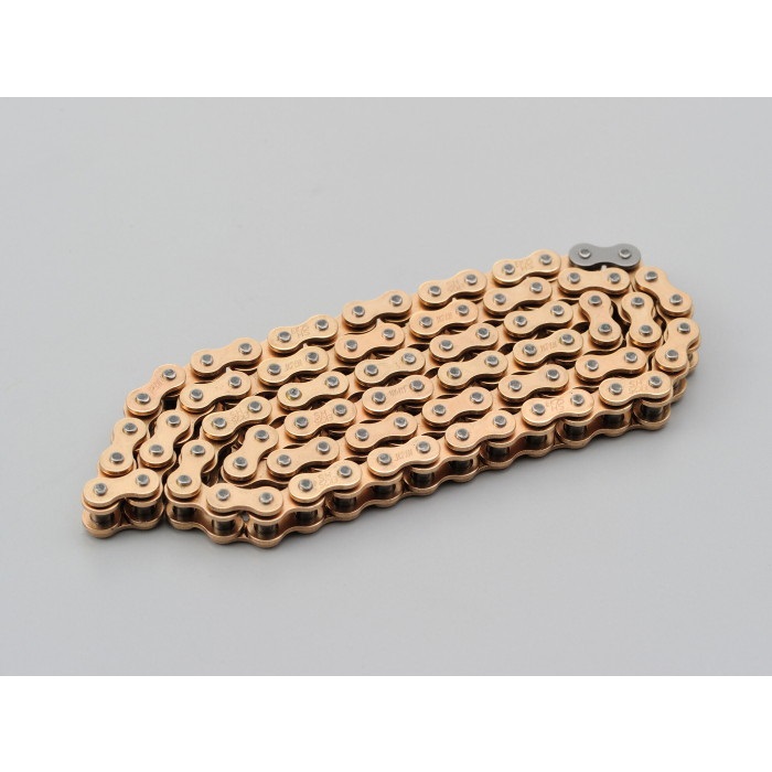 EKチェーン (江沼チヱン製作所製) を採用し、耐久性と更なる軽量化の両立を図りました。キンクしにくいソリッドブッシュタイプ。純正カムチェーンよりもリンクプレートが厚い25Hサイズはそのままに、ピン径を細くし軽量化。ピンには表面硬化処理 (CRH特殊クロマイジング処理) を施し、強度バランスも徹底的に煮詰めました。