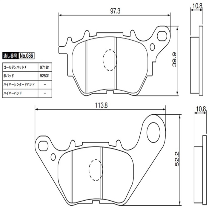 赤パッド No.086 MT-03 16-22 / YZF-R3 ABS 15-23 / MT-25 16-22 / YZF-R25 / ABS 15-23等