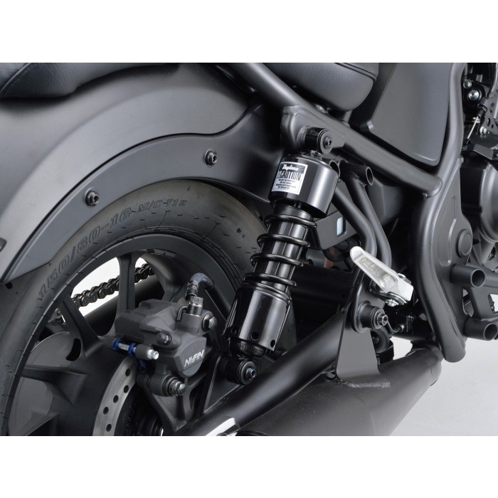 ローダウンしながらもストロークを約40mm確保。不等ピッチスプリング採用で、スタイルと乗り心地を両立。乗り心地を保ちながら足付き性が向上。最大荷重を確保し2人乗りにも対応。クロームメッキとブラックの2色をラインアップ。