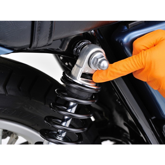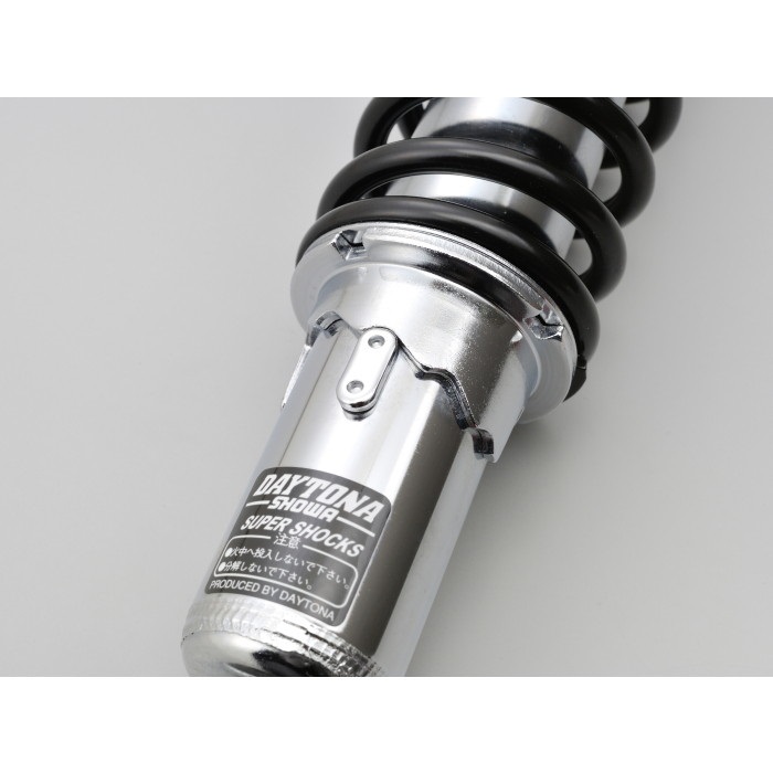 性能面を重視した本格的なリアショック。低価格ながら、伸び側減衰力11段階調整、イニシャル5段階調整が可能。ダンパーボディはスチール製クロームメッキ仕げ。スプリングはブラック塗装仕上げ。取付長320mm。